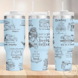 Book Lover Laser Engraving 30oz or 40oz Tumbler with Handle, Birthday Anniversary Tumbler Gift HFN