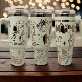 Bluey Mum Chilli Healer Generic Quencher | Bluey You’re Doing Great Tumbler Cup Laser Engraved 30oz or 40oz Tumbler with Handle, Birthday Anniversary Tumbler Gift HFN