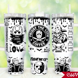 Friday the 13th Horror Movies Horror Characters 30oz or 40oz Tumbler with Handle, Gift for Jason Voorhees fan, Birthday Anniversary Tumbler Gift HFN Horror Halloween Tumbler