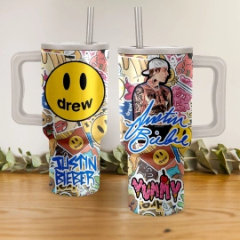 Justin Bieber Drew House Music Custom Stanley Quencher 40oz Stainless Steel Tumbler HG With Handle