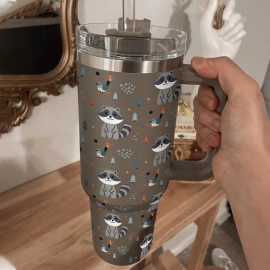Bird Racoon Tumbler 30oz or 40oz With Handle, Forest Pattern 30oz or 40oz Tumbler, Woodland Animal Tumbler 30oz or 40oz, Stainless Steel Tumbler, Insulated Tumbler HFN