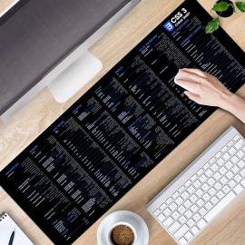 CSS3 Cheat Sheet Desk Mat | Home Office Decor| Gift Coworker | Quick Key, Large Anti-Slip Keyboard Pad Mouse Mat HG