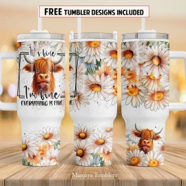 It’s fine I’m fine everything is fine 30oz or 40oz Quencher Tumbler Gift For Her Him Birthday Gift LN Funny quote Highland cow Waterslide