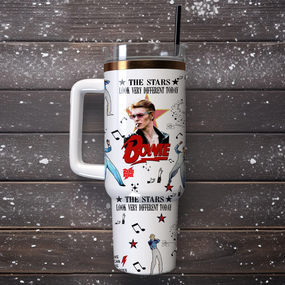 David Bowie Singer Actor Custom Quencher 30oz or 40oz Stainless Steel Tumbler With Handle, Best gifts for Friend Family NVA