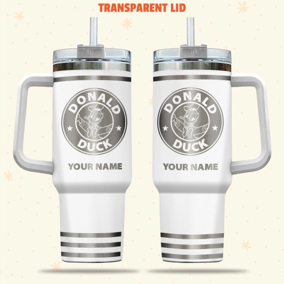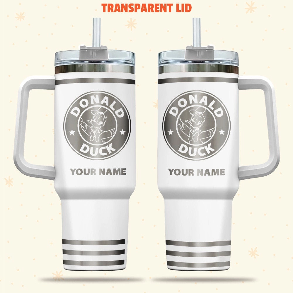 Donald Duck Disney Cartoon 30oz or 40oz Quencher Stainless Steel Tumbler With Handle, Best Gift Idea NVA