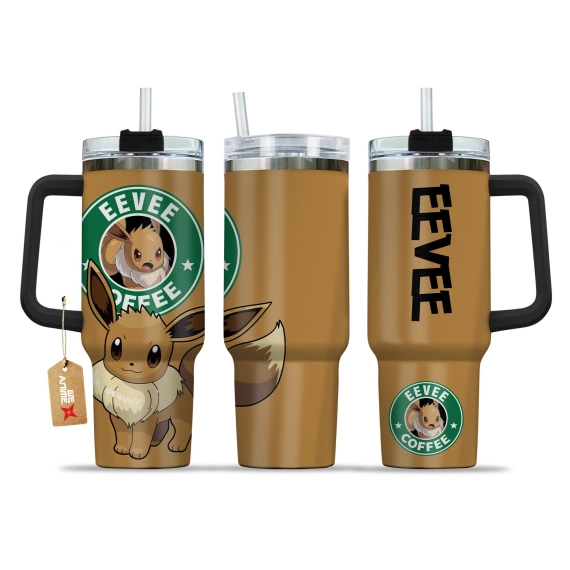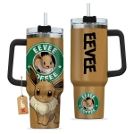 Eevee Coffee Pokemon Anime Custom Quencher 30oz or 40oz Stainless Steel Tumbler With Handle HG