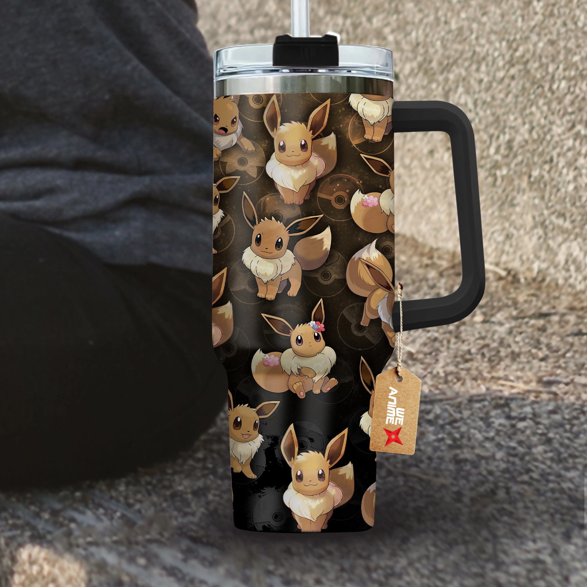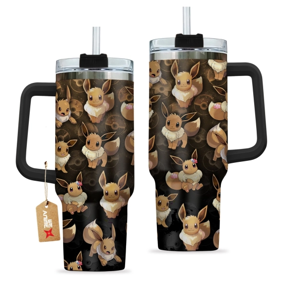 Eevee Pokemon Anime Custom Quencher 30oz or 40oz Stainless Steel Tumbler With Handle HG