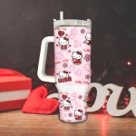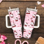 Mini Cute Hello Kitty Pink Cat Tumbler 30 or 40 oz Valentine Movies Fan Gift, Pink Valentine 40oz Quencher Tumbler, Valentine Cartoon 40oz Tumbler Fan Gift HFN