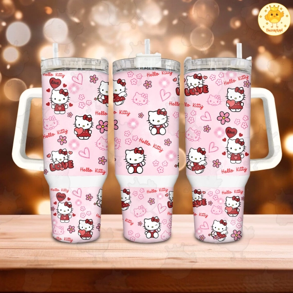 Mini Cute Hello Kitty Pink Cat Tumbler 30 or 40 oz Valentine Movies Fan Gift, Pink Valentine 40oz Quencher Tumbler, Valentine Cartoon 40oz Tumbler Fan Gift HFN