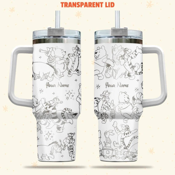 Pooh And Friends Cartoon 30oz or 40oz Quencher Stainless Steel Tumbler With Handle, Best Gift Idea NVA