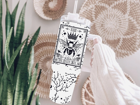 Queen Bee Tarot Card 30oz or 40oz Tumbler Witchy Vibes Celestial Quencher Gift For Her Him Birthday Gift LN