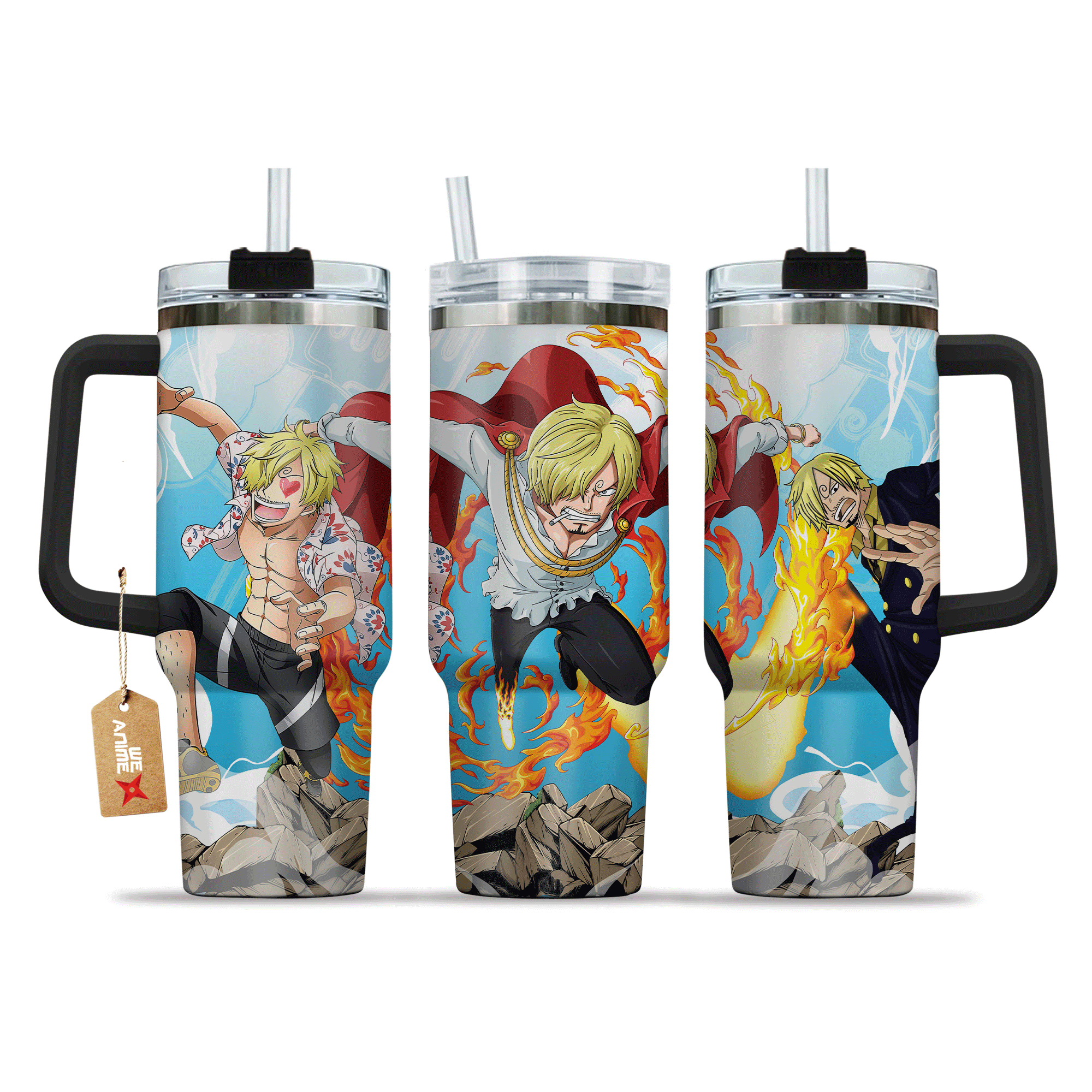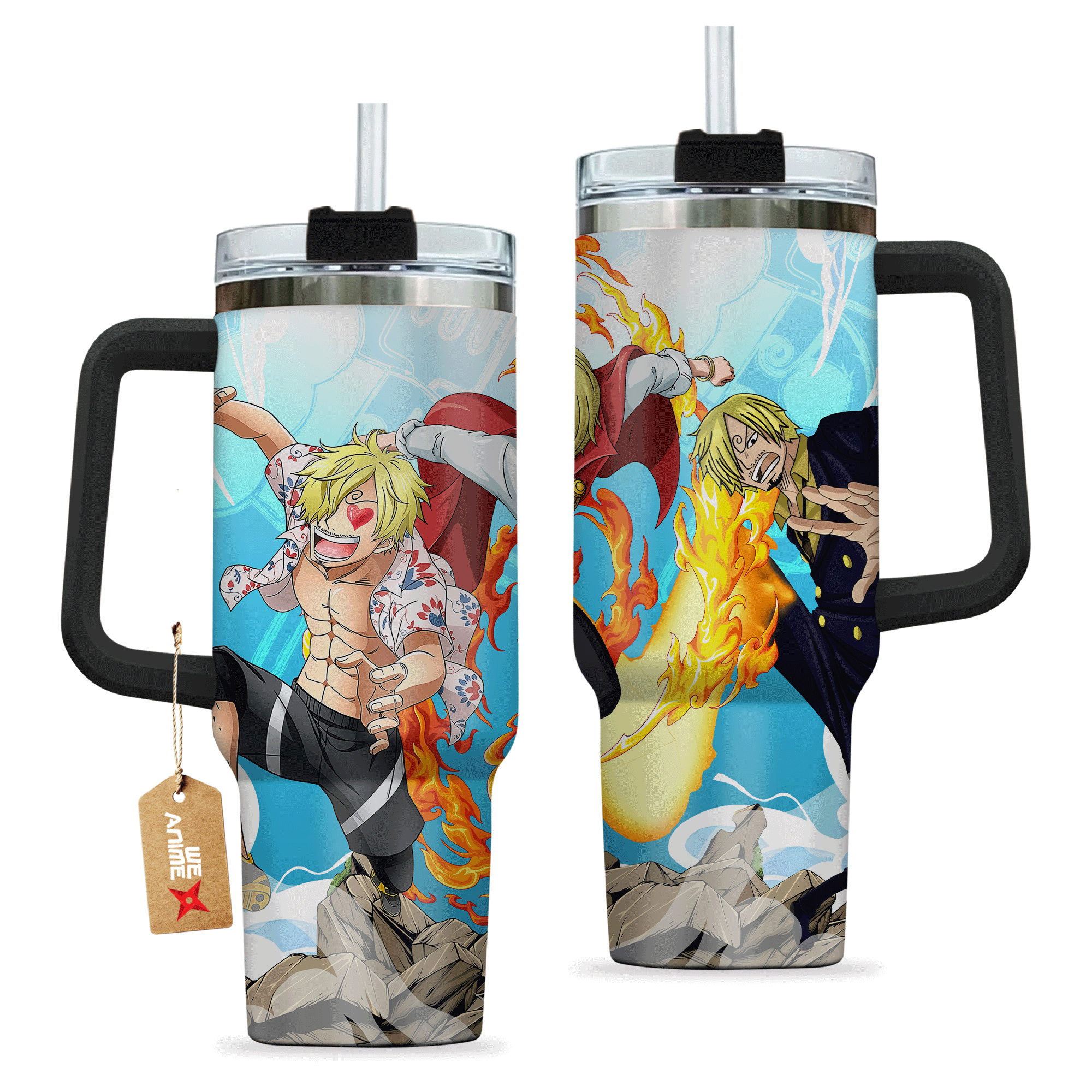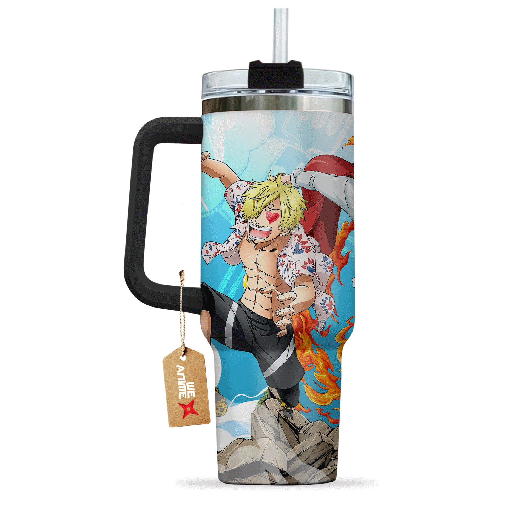 Sanji One Piece Anime Custom 30oz or 40oz Quencher Stainless Steel Tumbler With Handle, Best Gift Idea NVA, Best Gift Idea NVA