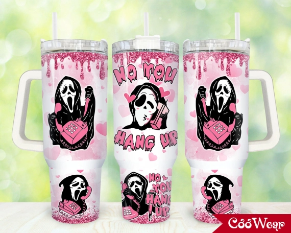 Scream Horror Characters Valentine Ghostface No You Hang Up 30oz or 40oz Tumbler with Handle, Birthday Anniversary Tumbler Gift HFN