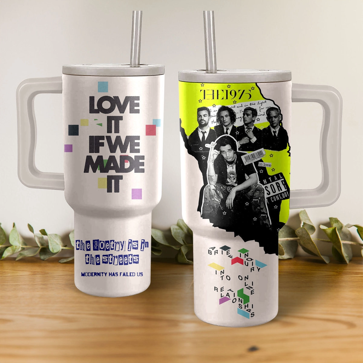 The 1975 Music Custom Stanley Quencher 40oz Stainless Steel Tumbler HG With Handle