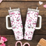 Valentine Cartoon Hello Kitty Cupid Love Heart 30oz or 40oz Tumbler with Handle, Birthday Anniversary Tumbler Gift HFN