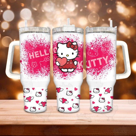 Valentine Hello Kitty Love 30oz or 40oz Tumbler with Handle, Birthday Anniversary Tumbler Gift HFN