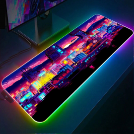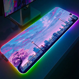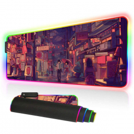 Anime Japanese City Gaming RGB Mousepad Led Gaming Computer Accessories HG