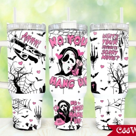 No You Hang Up Horror Movies Characters 30oz or 40oz Tumbler with Handle, Gift for Ghostface Fan, Birthday Anniversary Tumbler Gift HFN
