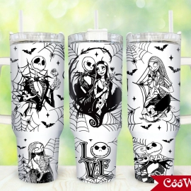 Nightmare Before Christmas Horror Movies Halloween Characters Couple Jack And Sally 30oz or 40oz Tumbler with Handle, Birthday Anniversary Tumbler Gift HFN