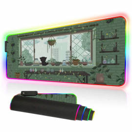 Plant Lovers Rainy Day Cute sage Green Black Cat RGB Mousepad Led Gaming Computer Accessories HG
