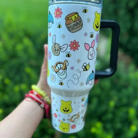 Pooh And Friends Cartoon 30oz or 40oz Quencher Stainless Steel Tumbler With Handle, Best Gift Idea NVA