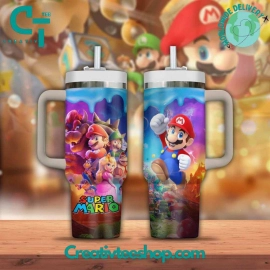 Super Mario Cartoon Games Custom Stanley Quencher 30oz or 40oz Stainless Steel Tumbler With Handle HG