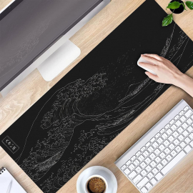 Thelimitttv Ocean Wave Black Japanese Desk Mat Cute Japanese Gifts for Men Women Mousepad Gaming Gamer Laptop Pad Mat, Keyboard pad mat Long Mouse pad, Extended Mouse Mat Extra Large Mouse pad HG